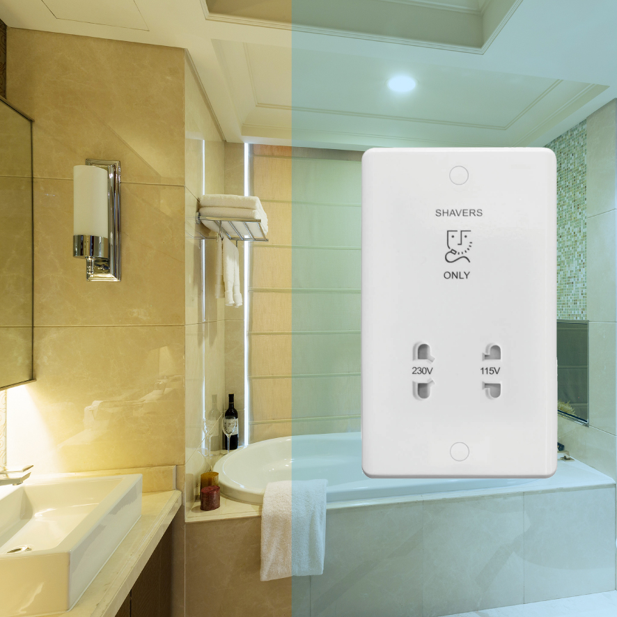 Molded White Curve Profile Dual Voltage Shaver Socket 115V/230V