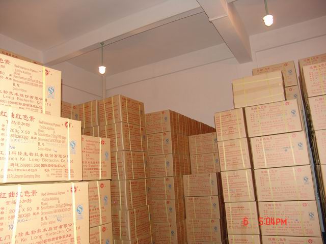 With rice and soybeans as raw material, the produced Monascus red pigment is a high class natural food pigment in use of liquid submerged fermentation and unique refining technology.