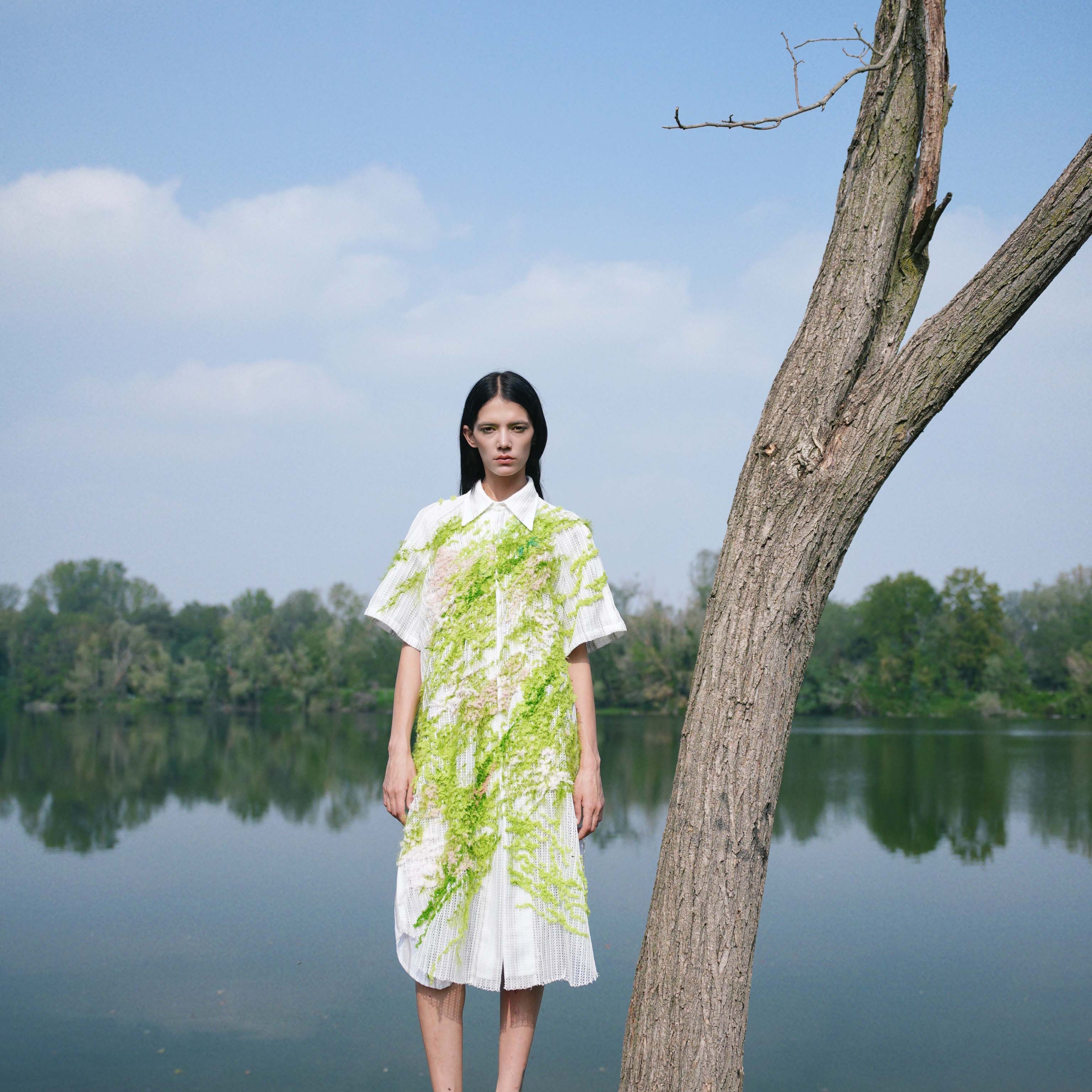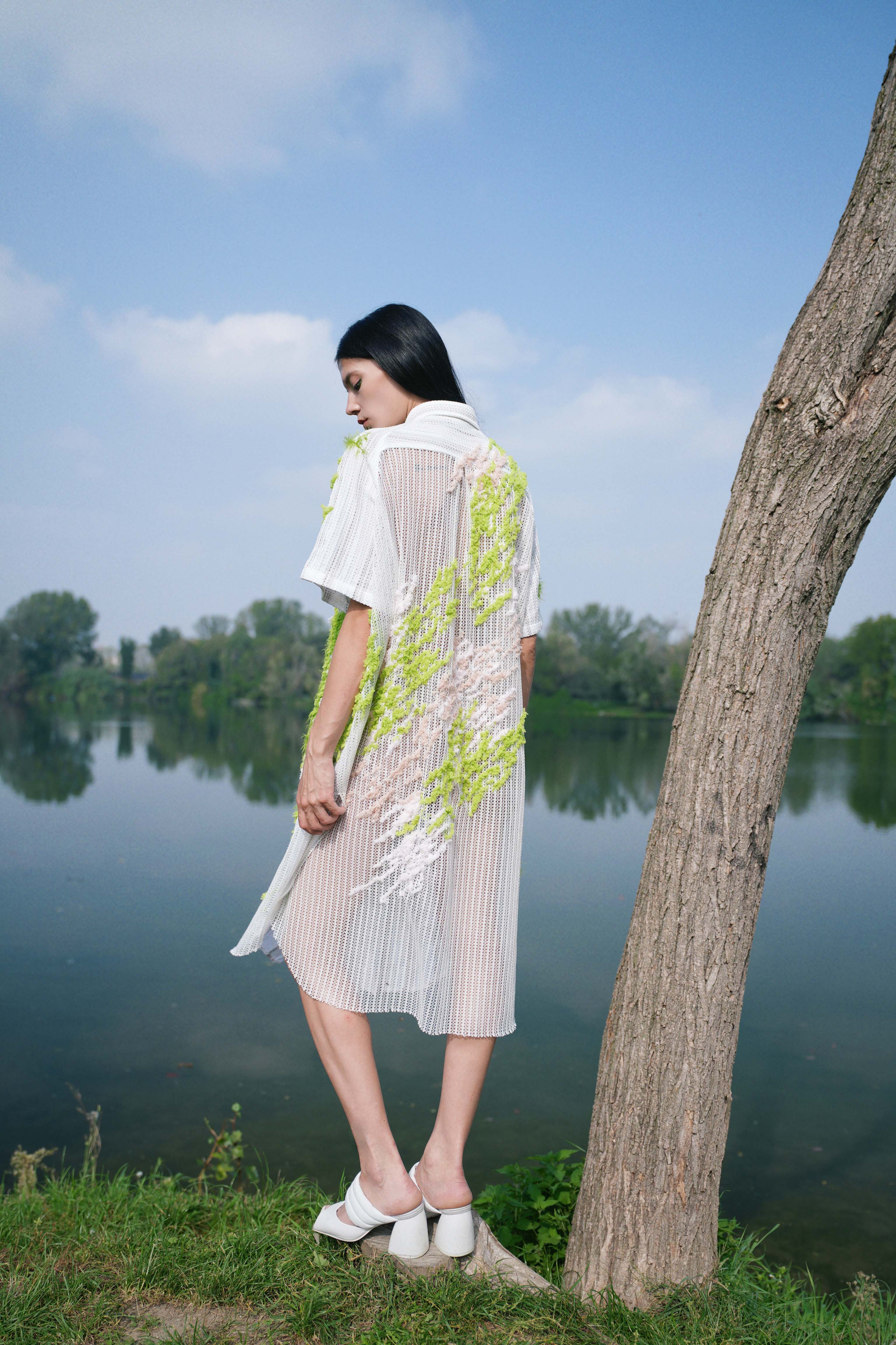 “Jardin,” from MODEMENT’s Monet’s Garden series by Weaver Studio Limited, elevates the shirt dress into a celebration of exquisite handmade beauty. Each panel is meticulously woven, crocheted and embroidered by hand, weaving textured florals in vibrant yarns that bloom against a delicately crafted mesh base. Subtle irregularities in stitch and shade become marks of artisanal authenticity, echoing the waterlily’s organic grace. This design honors time-woven traditions while inviting creative collaborations—whether through unexpected color palettes, sustainably sourced fibers or avant-garde embellishments—ensuring every “Jardin” piece remains a singular masterpiece of handcrafted artistry.