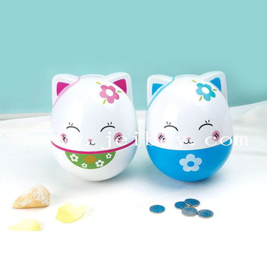 This is a money bank with a lovely cat appearance. It features a white body with colorful prints for a cuter look. There are different colors available for you to choose from.
