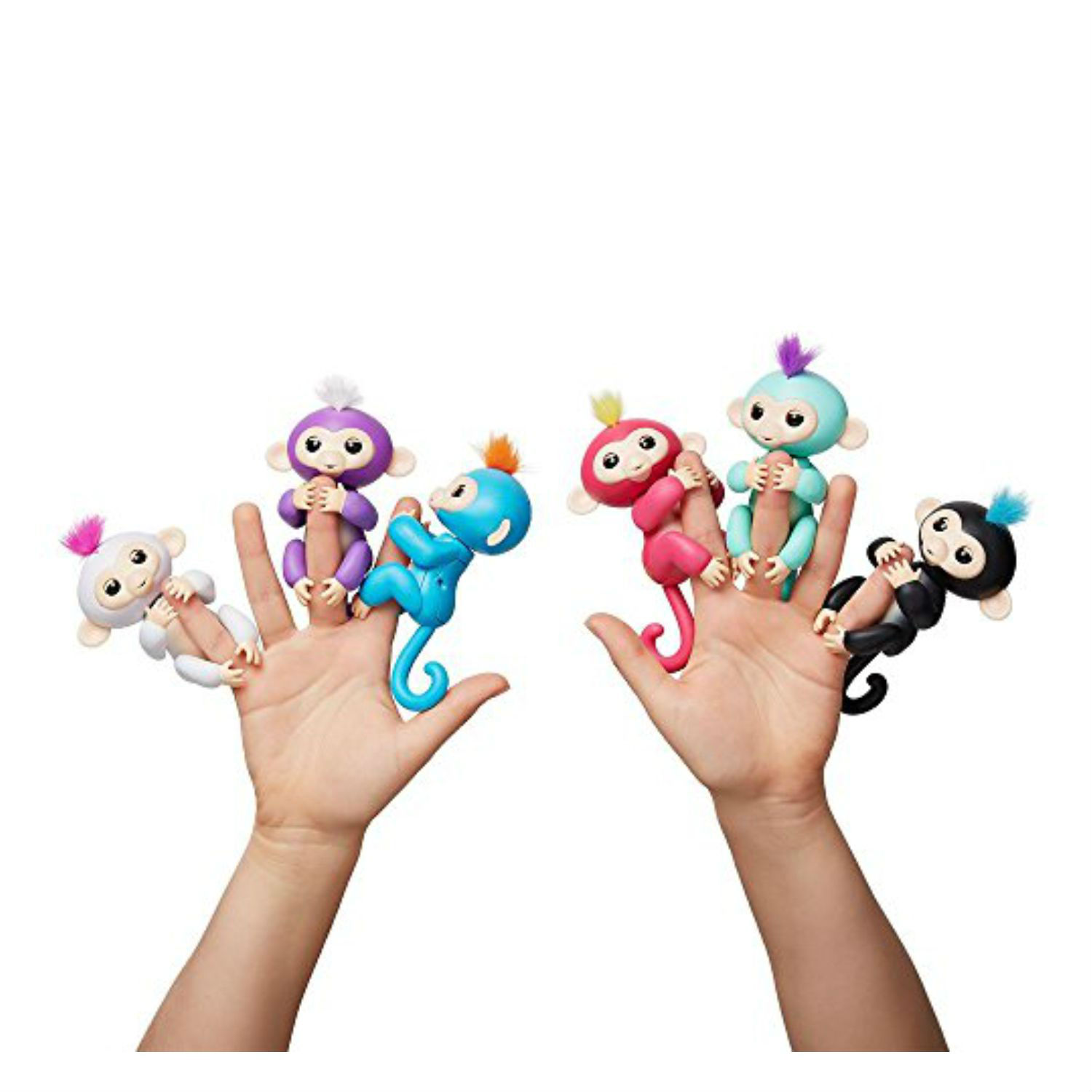 Fingerlings are adorable baby monkeys that are curious about the world around them—starting with you! These interactive pets love to hang onto your finger, blink their eyes, turn their heads, blow kisses, swing by their tails, and talk in monkey babble!