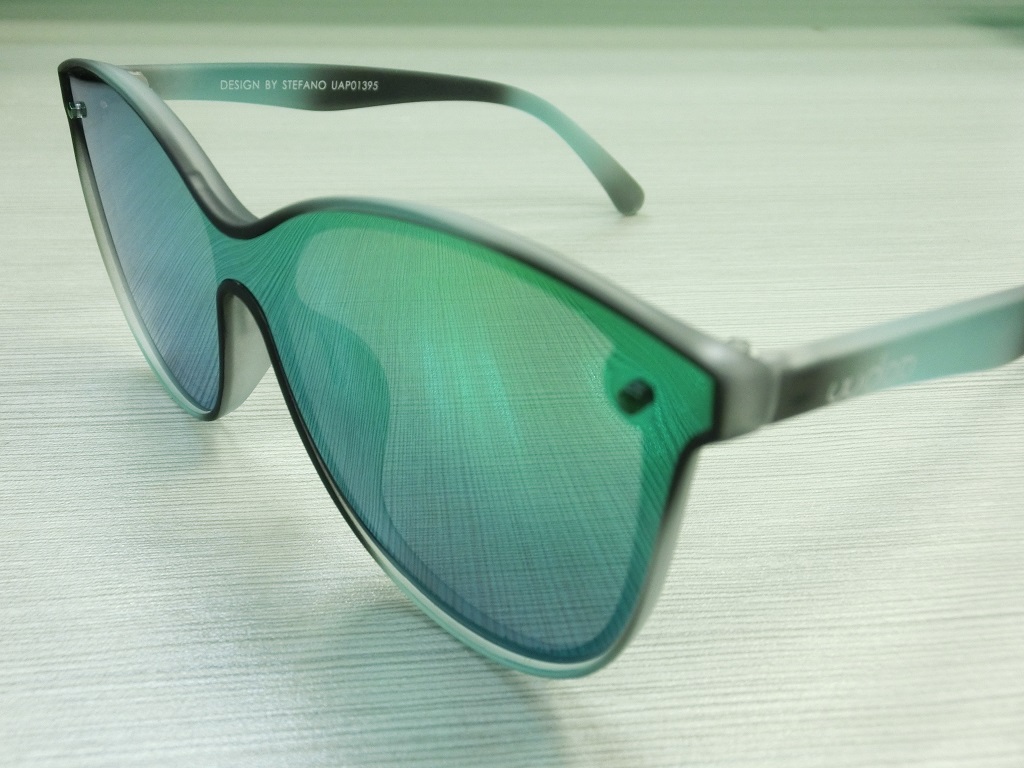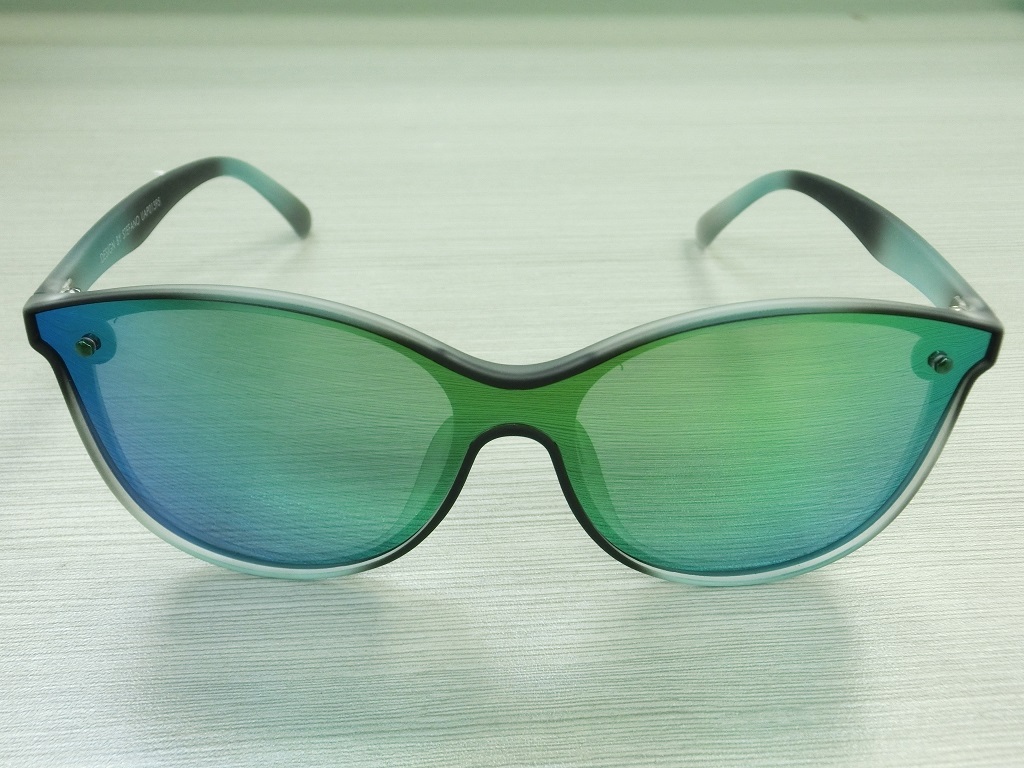 Futuristic block cut sunglasses features an all-lens build made from a single piece of colorful translucent material. Simultaneously functional and stylish, these shades showcase a frameless silhouette. The minimalist, one piece construction extends throughout the entire frame, arm to arm along with the bridge. Opt for this sleek and eye popping accessory that is perfect for the season. Made with a CP based frame and reinforced metal hinges.