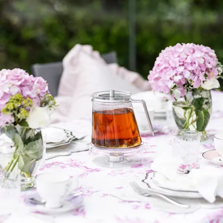 The Mono Ellipse teapot was a technical world novelty. Designer Tassilo von Grolman experimented for a long time with Mono and the technicians of glass manufacturer Schott AG in Mainz until it became possible: a heat-resistant borosilicate glass with an asymmetrical shape that is round at the top and elliptical at the bottom. The result is a clear silhouette of glass and stainless steel of timeless beauty. The large strainer gives the tea room to develop its aroma to the fullest. The silicone-printed footprint allows for gentle placement, protects and insulates. The matching glass teapot warmer allows the pot to literally float and keeps the tea warm for a long time. Matching Mono Ellipse tea cups complete the tea enjoyment.