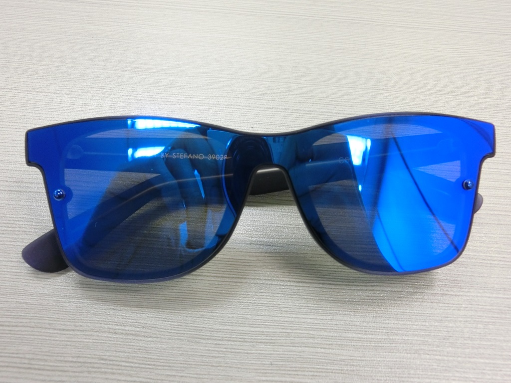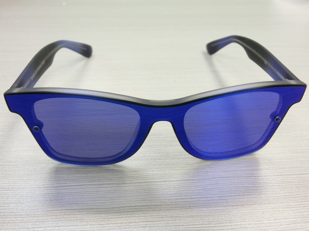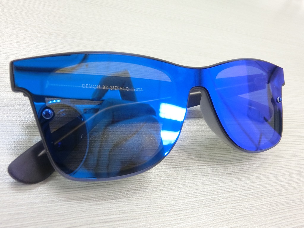 Futuristic block cut sunglasses features an all-lens build made from a single piece of colorful translucent material and designed with a reflective colored mirror coating. Simultaneously functional and stylish, these shades showcase a frameless silhouette. The minimalist, one piece construction extends throughout the entire frame, arm to arm along with the bridge. Opt for this sleek and eye popping accessory that is perfect for the season. Made with a CP based frame, reinforced metal hinges, and offers polarized lens 100% UV protection.
