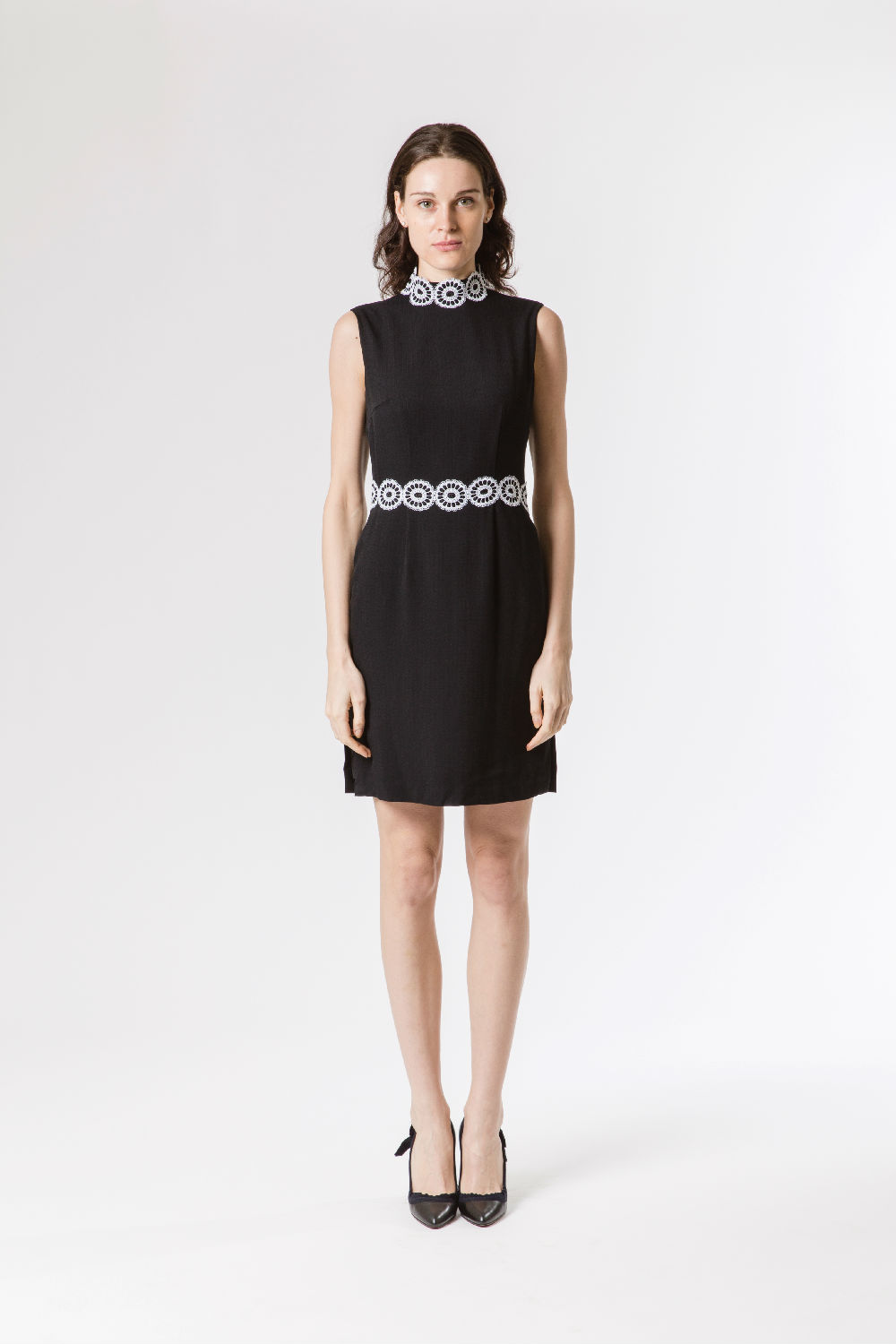 Give your wardrobe an elegant and refreshing kick with Monochrome Collar Lace Dress! It is perfection over sleeveless and finished with a lace high neckline for an elegant touch. It comes in black, side pockets and enclosed zipper at the back. It is perfect for lounging around on lazy working days, pair it with flats and a pair of earrings.