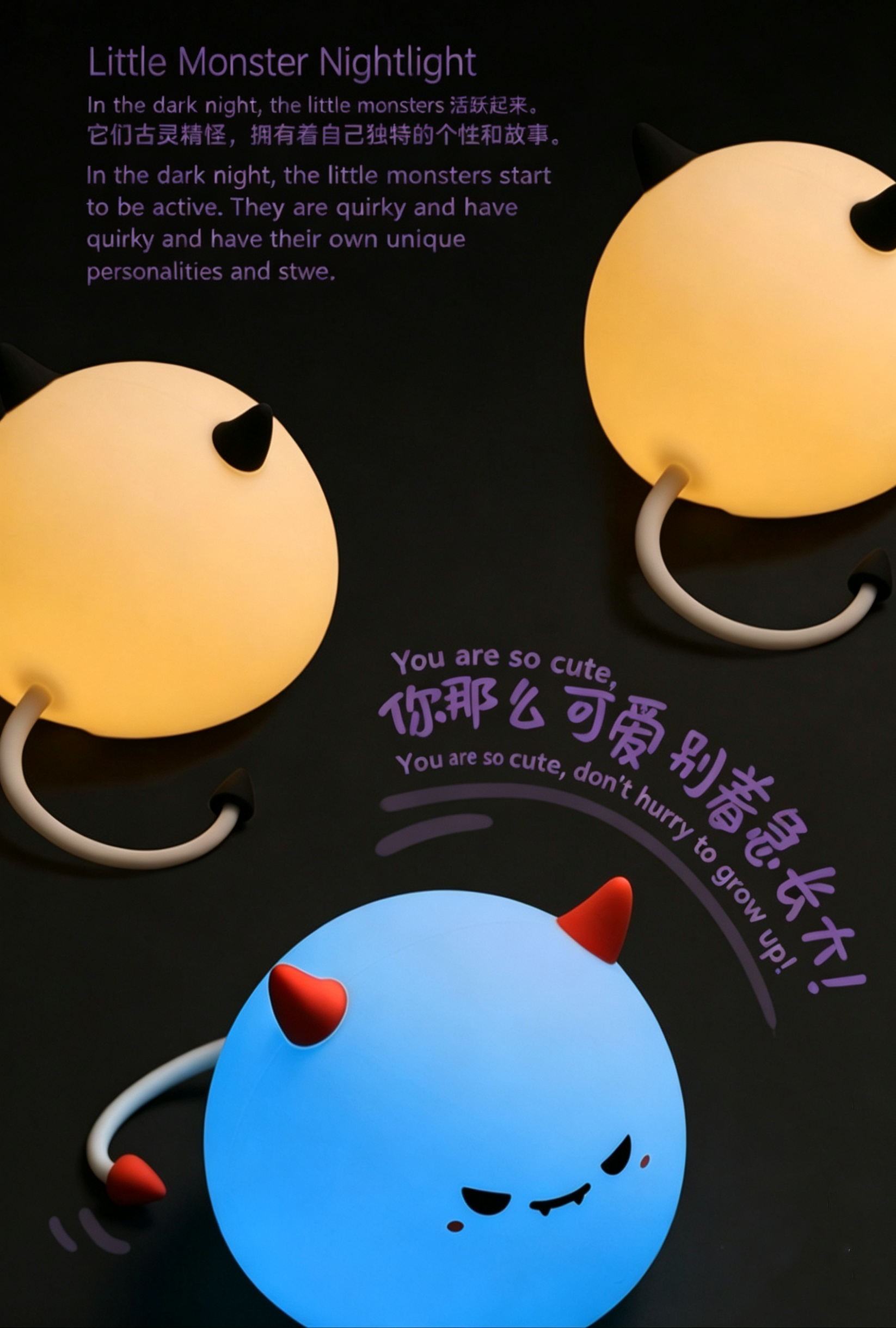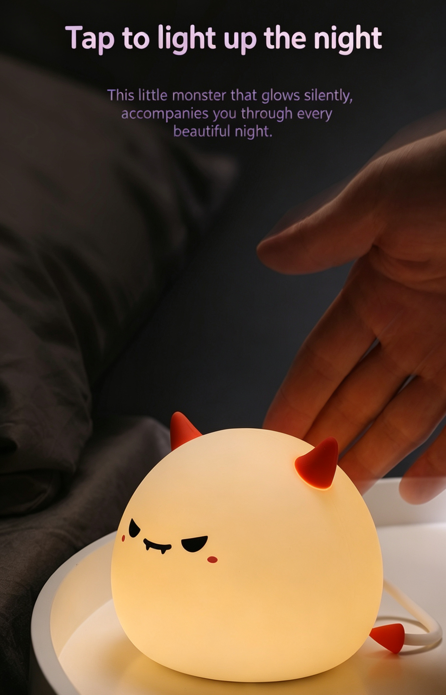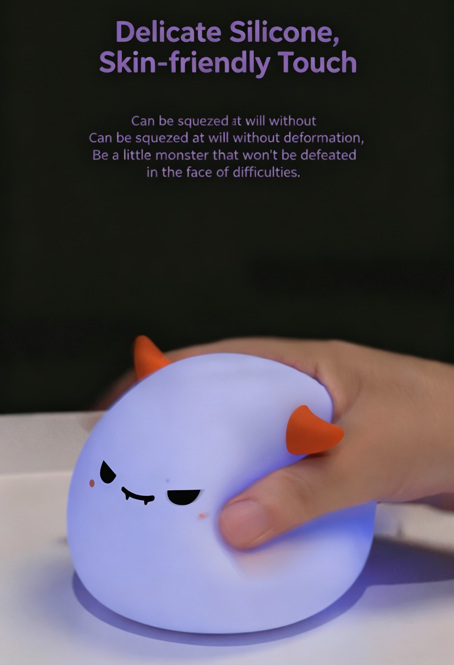 Our cute Monster Silicone Night Light is the perfect blend of fun, comfort, and practicality! Made of soft, skin-friendly silicone, it features a tap control design to easily turn on/off, adjust brightness, or switch 7+ RGB colors. With 3 dimmable warm light modes, a 30-minute auto-off timer, and eye-friendly glow, it’s ideal for bedtime, Halloween decor, bedroom, and night market gifts. Rechargeable via Type-C, durable and squeezable, this adorable monster lamp is a great companion for kids and a perfect gift for any occasion!
