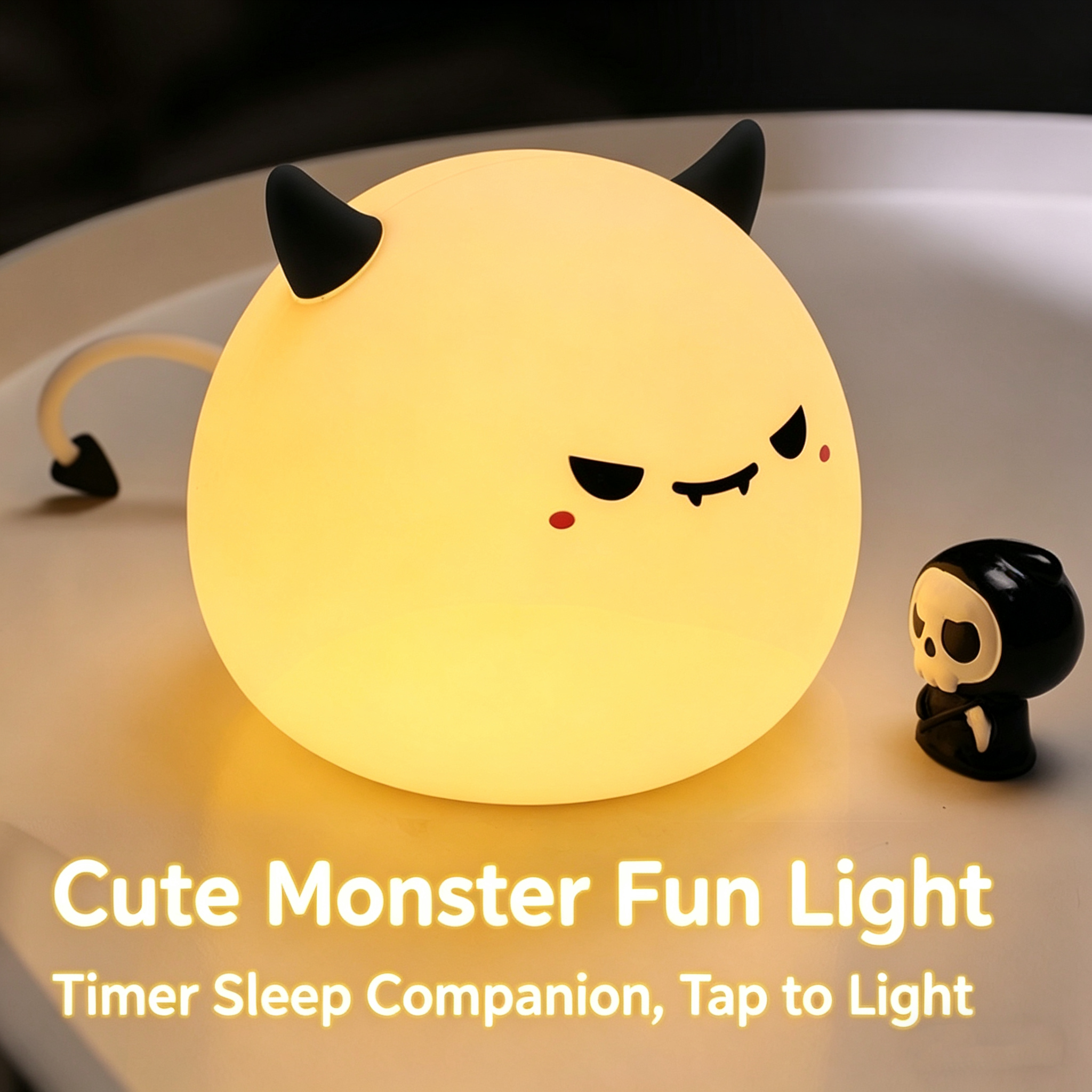 Monster Silicone Night Light - Halloween Ambient Lamp, Tap Control Bedside Lamp for Bedroom, Night Market Gift & Decor