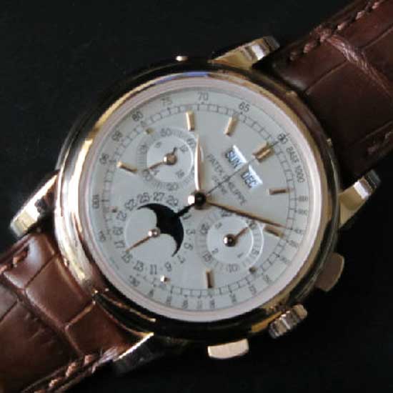 Showcased is a delicately crafted men's moon phase wristwatch. The elegant design blends sophisticated taste with advanced workmanship. This luxurious timepiece embodies grace and superiority.
