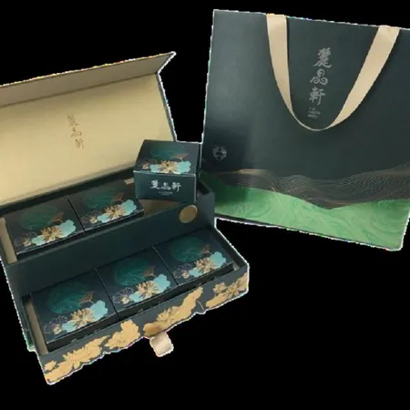 This set of gift boxes is dominated by deep green, decorated with green landscape patterns and golden motifs. It is like an elegant landscape scroll hidden in a box, exuding an ancient charm and exquisite beauty.