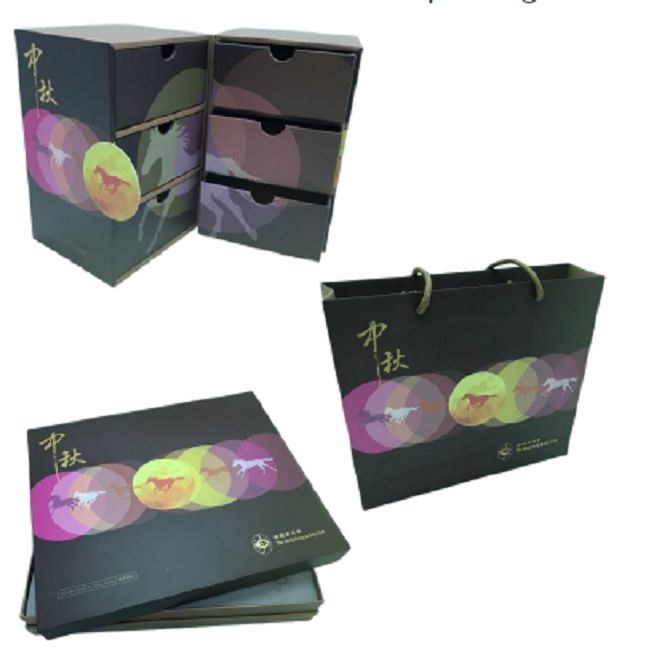 This Mid-Autumn Festival gift box features a black background with colorful rings around a galloping horse. It has a drawer-style design and a handbag design, integrating traditional Mid-Autumn Festival connotations with modern visual beauty, and fully showcasing a refined and harmonious atmosphere of reunion.