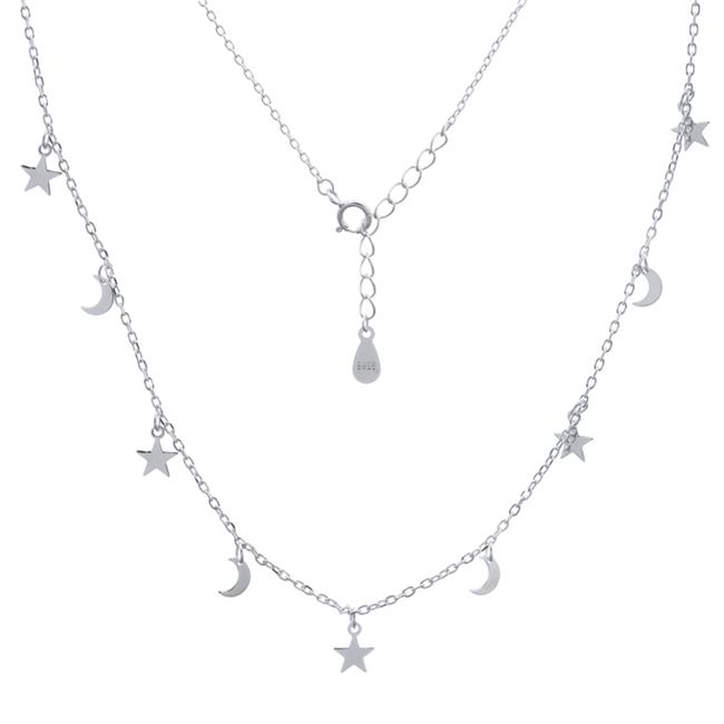 Moons and Stars Comparing Silver Plated 925 Chain Necklace