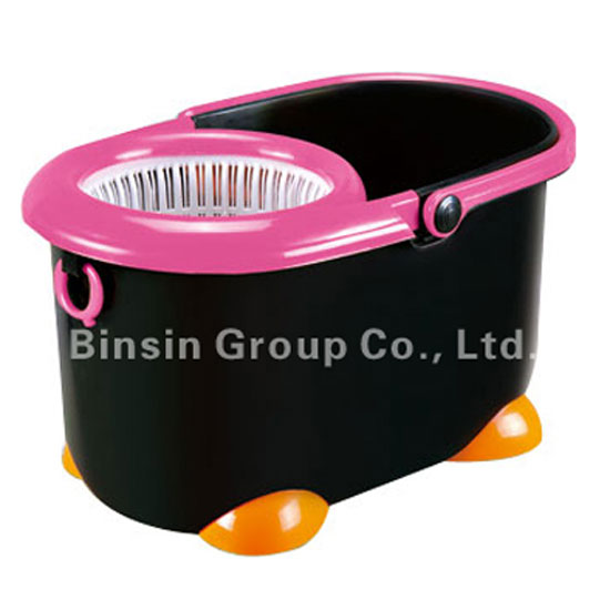 This mop bucket adds a playful touch to your daily chores. It features an attractive, bright design in contrasting colors. It allows you to clean and dry your mop easily. The ergonomic design offers a comfortable position for carriage.