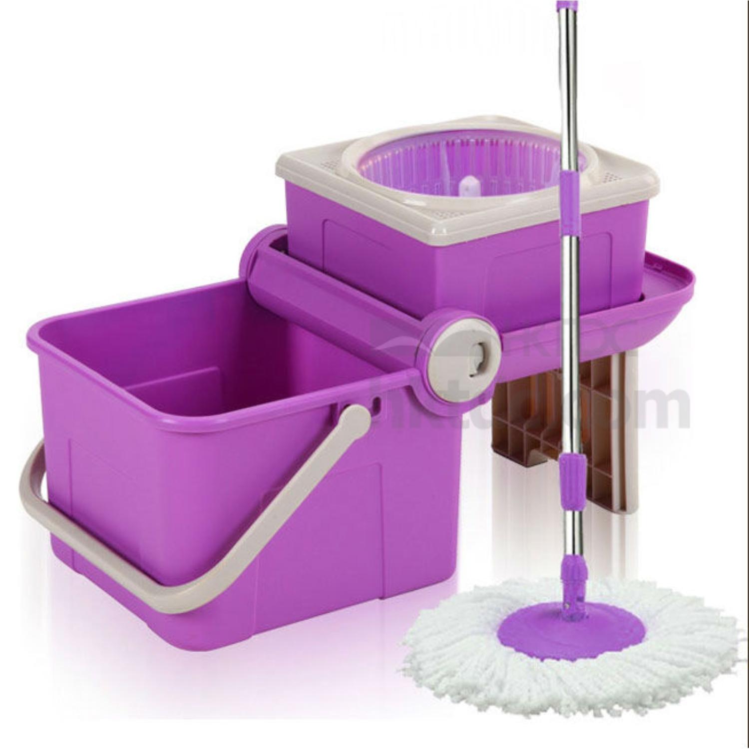 This mop and bucket set includes a mop with 360-degree rotation tractors and a collapsible mop bucket. The mop disc is surrounded by parcels microfiber cloth back and forth and will not scratch the furniture. It can be used for dust absorption, oil decontamination, etc. and is great for mopping the floor, washing windows, sweeping ceilings, car washing and more.