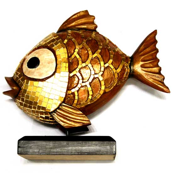 The fish-shaped decoration comes with a standing base for easy display. The fish figure flaunts mosaic patterns to add a decorative touch. This mosaic fish decoration will definitely spice up your room instantly.