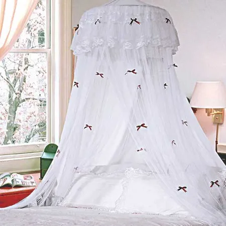 This polyester mosquito net comes with a white appearance for a stylish look. It is made of 100% polyester for a comfortable touch. This well-designed mosquito net features delicate patterns in a bright color for added elegance.