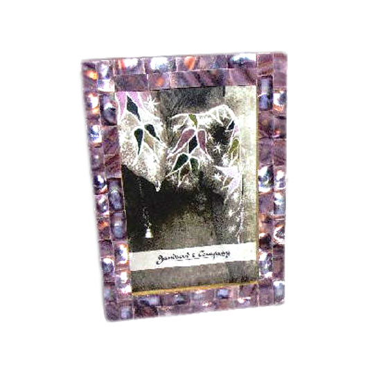 This photo frame is meticulously made with purple-tinted mother of pearl. The lustrous finish and colorful shimmer are absolutely gorgeous. You can use this frame to spice up your home.