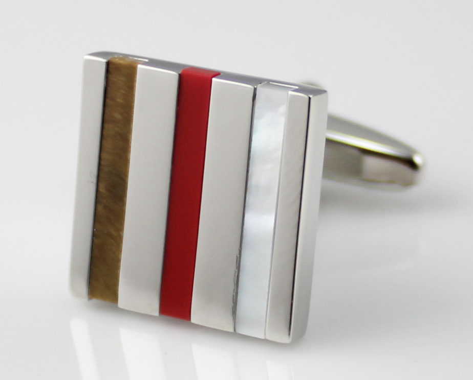 • Mother of pearl, tiger eye and red stone stripes cufflink
