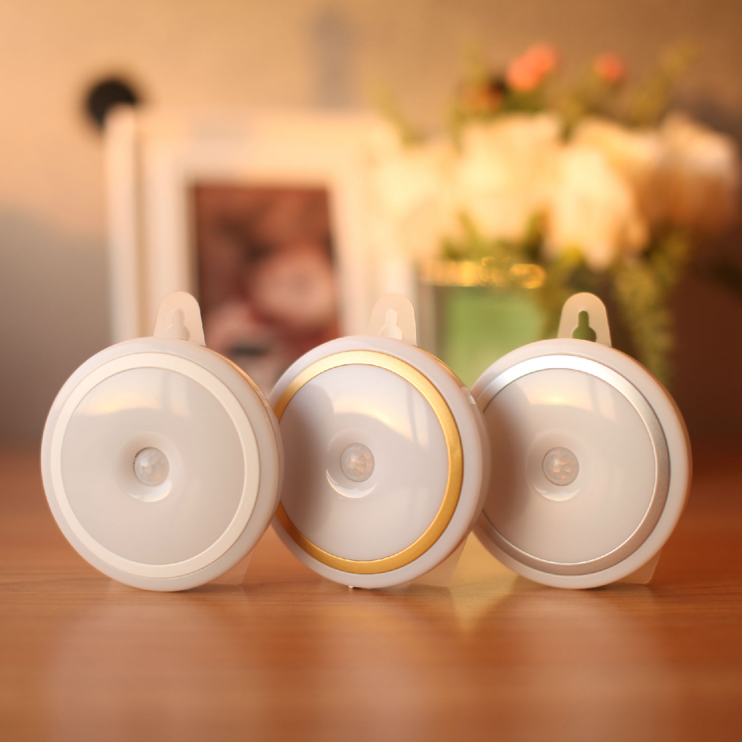 Featured here is a dimmable LED night light in a compact round shape. It has a touch control switch and is equipped with a motion sensor for automatic operation. This LED night light uses five 3528SMD LEDs as the light source and is excellent for accent lighting use.