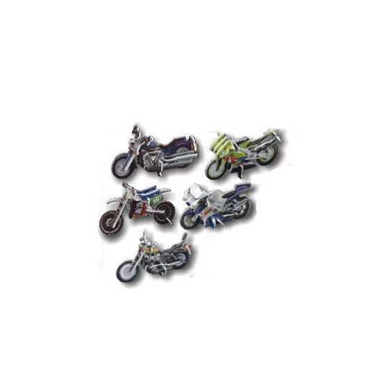 These puzzle pieces can be pushed out from a piece of perforated plastic card and assembled into a 3D motorcycle model. They are fun for children to play with. These puzzles are also ideal for motorcycle lovers.