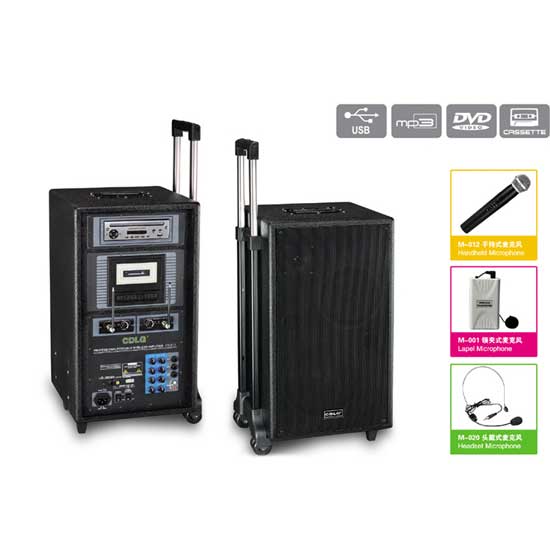 This movable wireless PA speaker can be widely used in conferences, musical performances, theme pubs, night clubs, shops, religious facilities, etc. It delivers fantastic stereo sounds with great clarity and dynamics. The speaker is fitted with a retractable handle and wheels for easy movement.