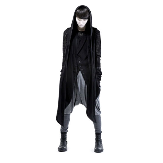 This muffler vest is made out of rayon, polyester and polyurethane. Its plain black design lends stylishness to your body. This piece features a hood and an extended length for a complete fashionable look.