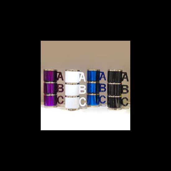 • Each small cup has an alphabetical letter attached on the side, which is used as a grip or a handle.