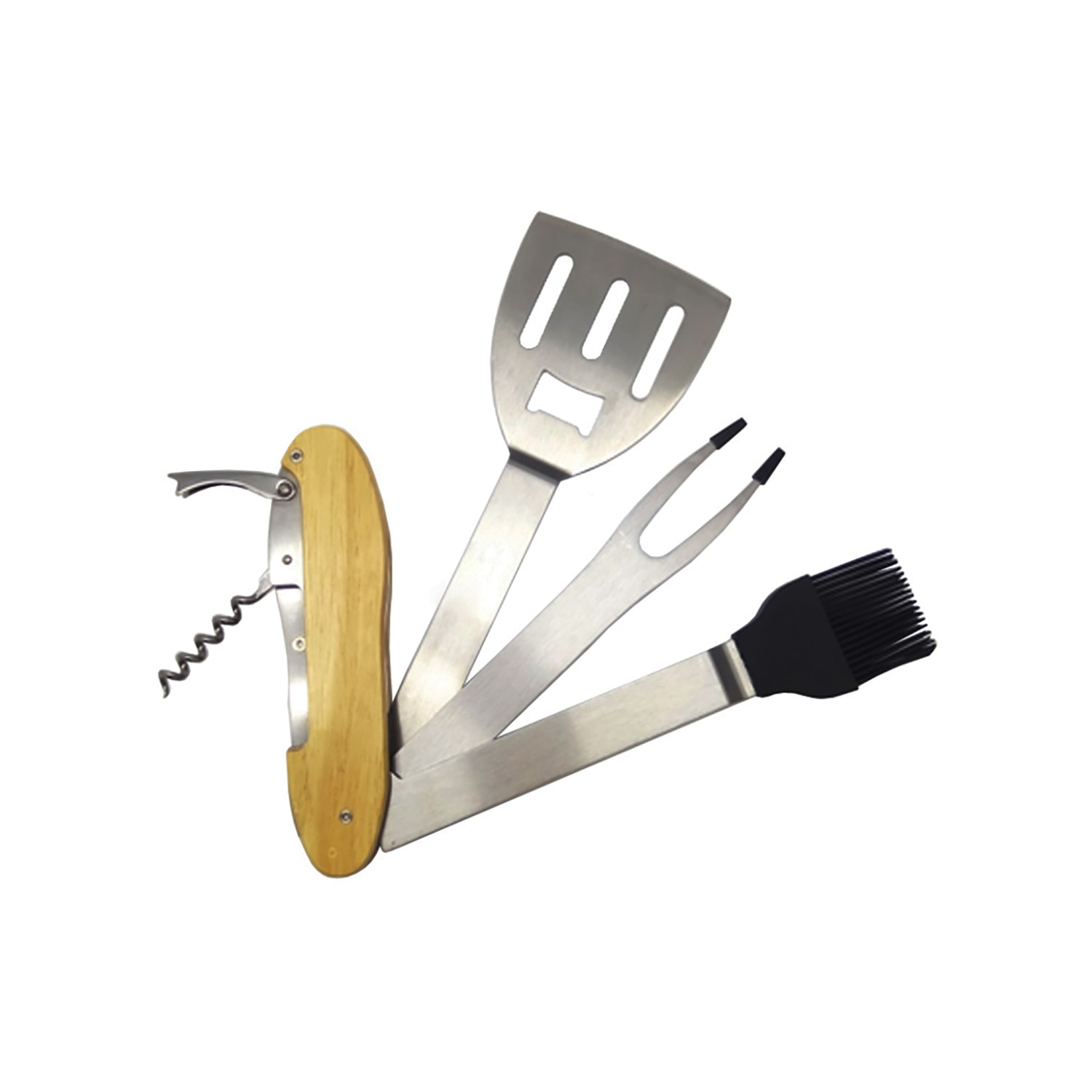 Small-sized 5-in-1 Multi BBQ Set with Wooden Handle includes the following features :