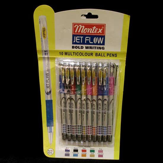 Showcased here is a package of multi-color ball pens with foil bodies that ensure long-lasting durability. The rubber handle offers a soft and comfortable grip. This ball pen set is essential for every student.