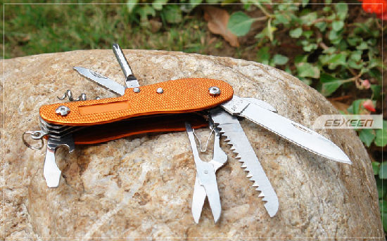 - Items included: knife, saw, scissor, can opener, bottle opener, nail file, needle, Philip screwdriver and corkscrew.
