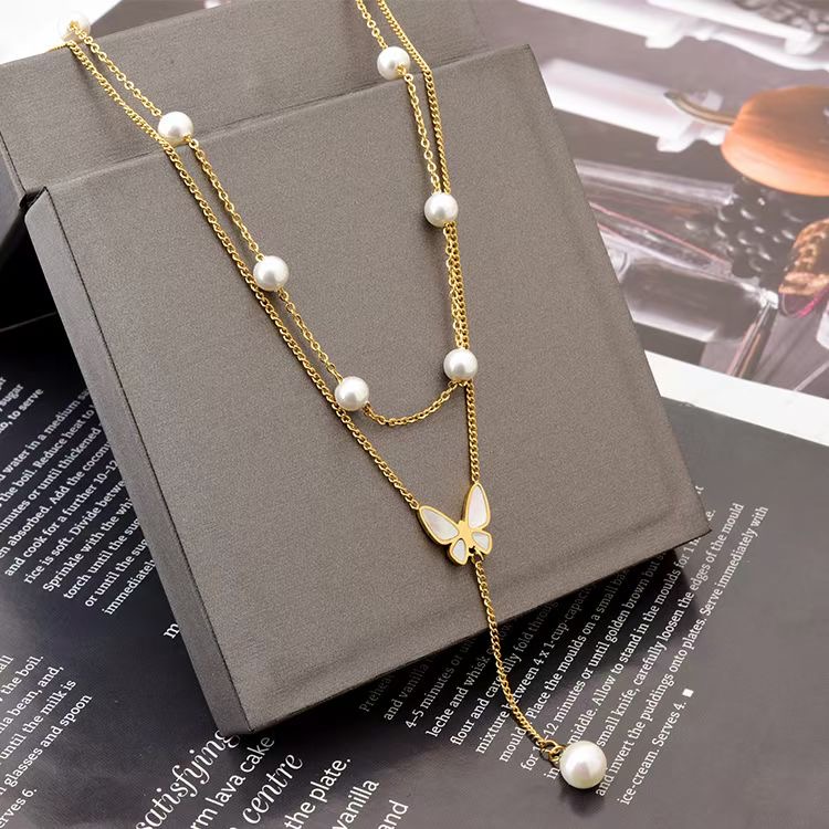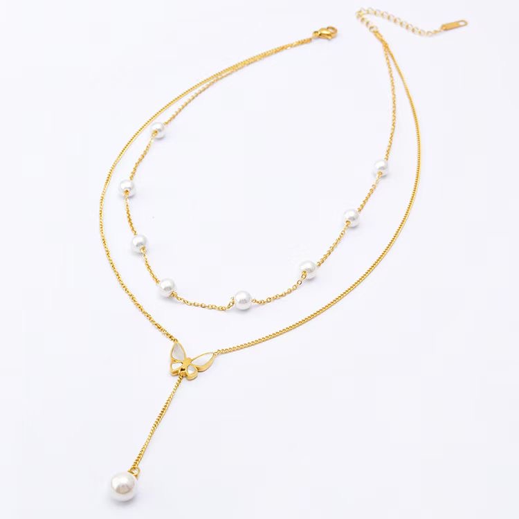 Multi Layered Gold Plated Butterfly Shaped Charm Pendant Necklace