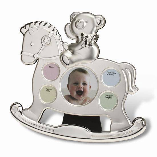 Sweetly display your baby's birth record and photo with this adorable Teddy-on-Rocking-Horse photo frame. It lets you record your baby’s name, birth date and time, weight and length, and place of birth. Preserve the priceless moment of your baby’s birth with this decent frame.