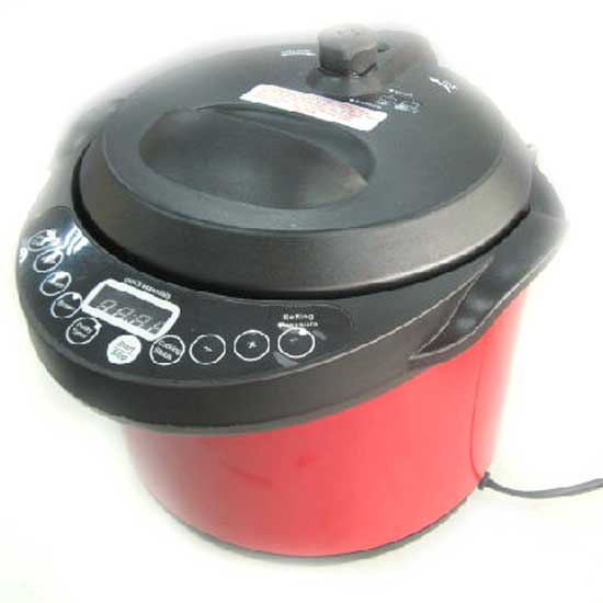 This multi-pressure cooker features a stylish red-and-black construction. It comes with 6 settings including high pressure, low pressure, steam, slow cook, brown and warm. It is designed with an intuitive touch panel with LED display for easy control.