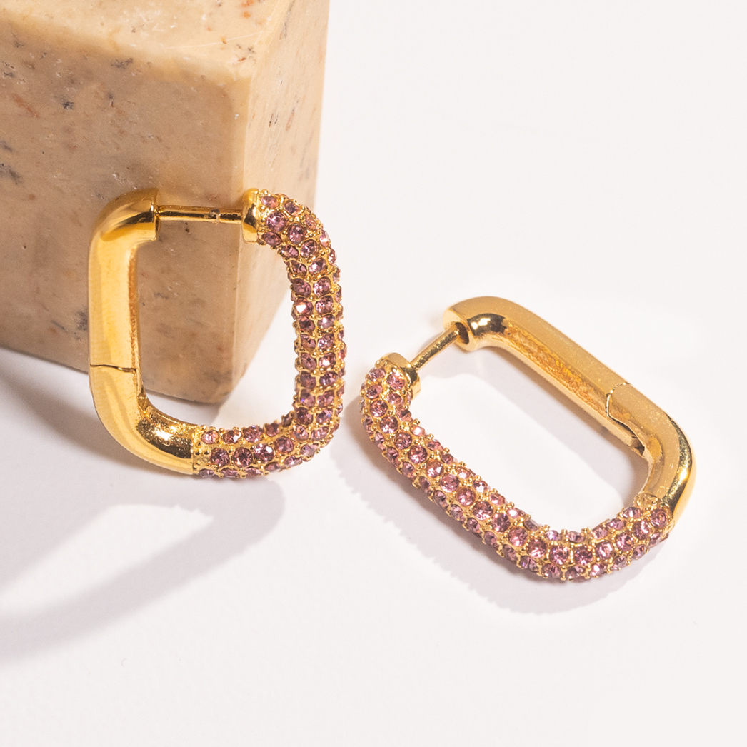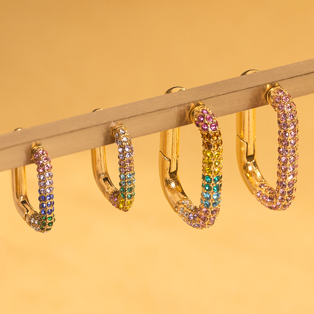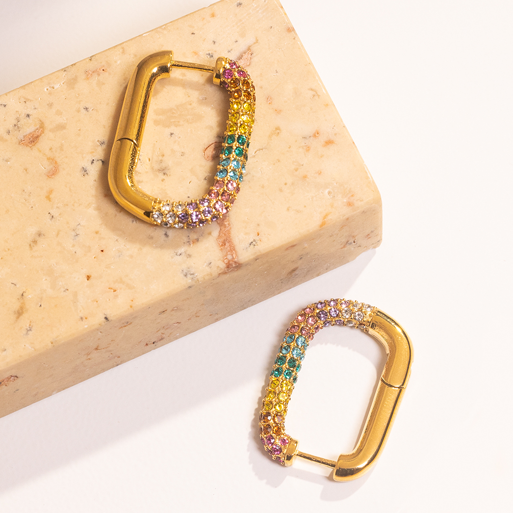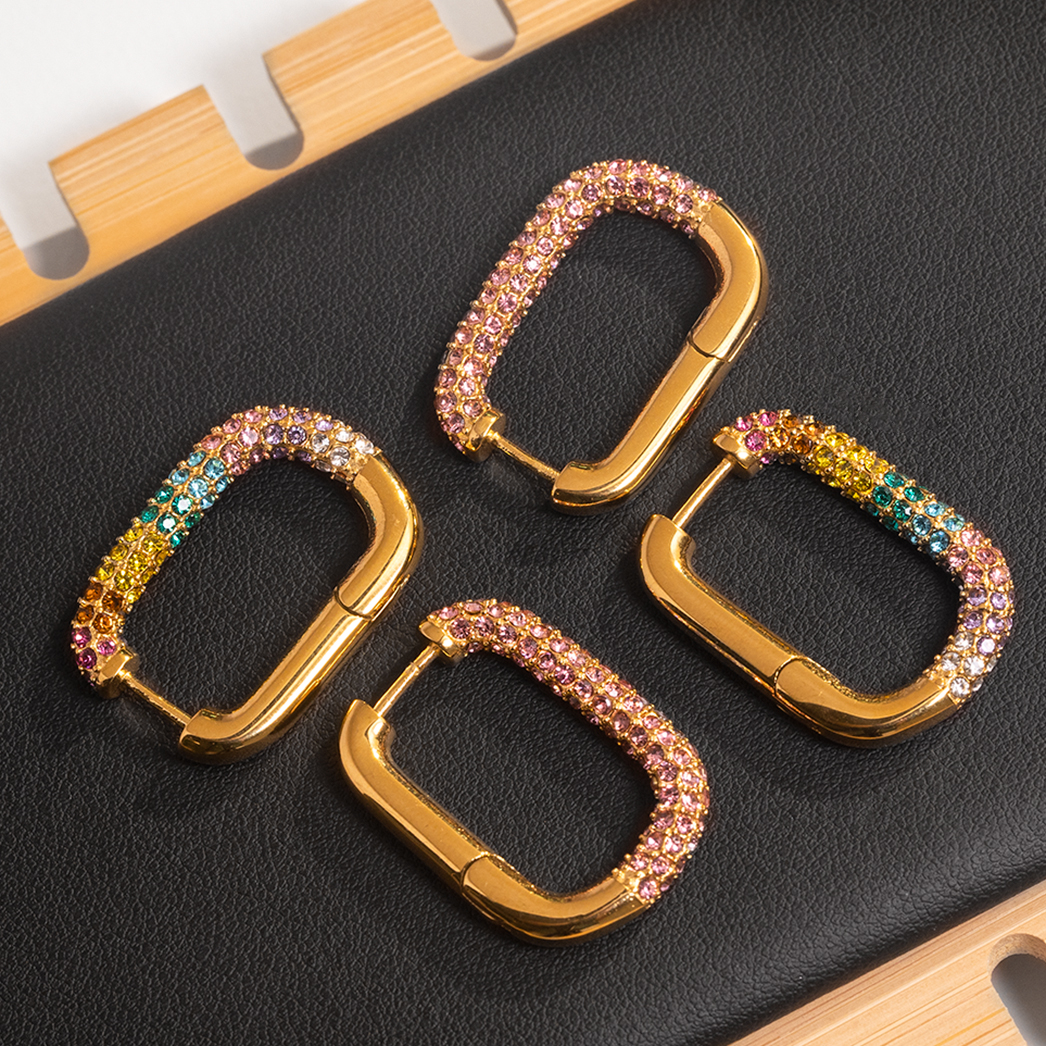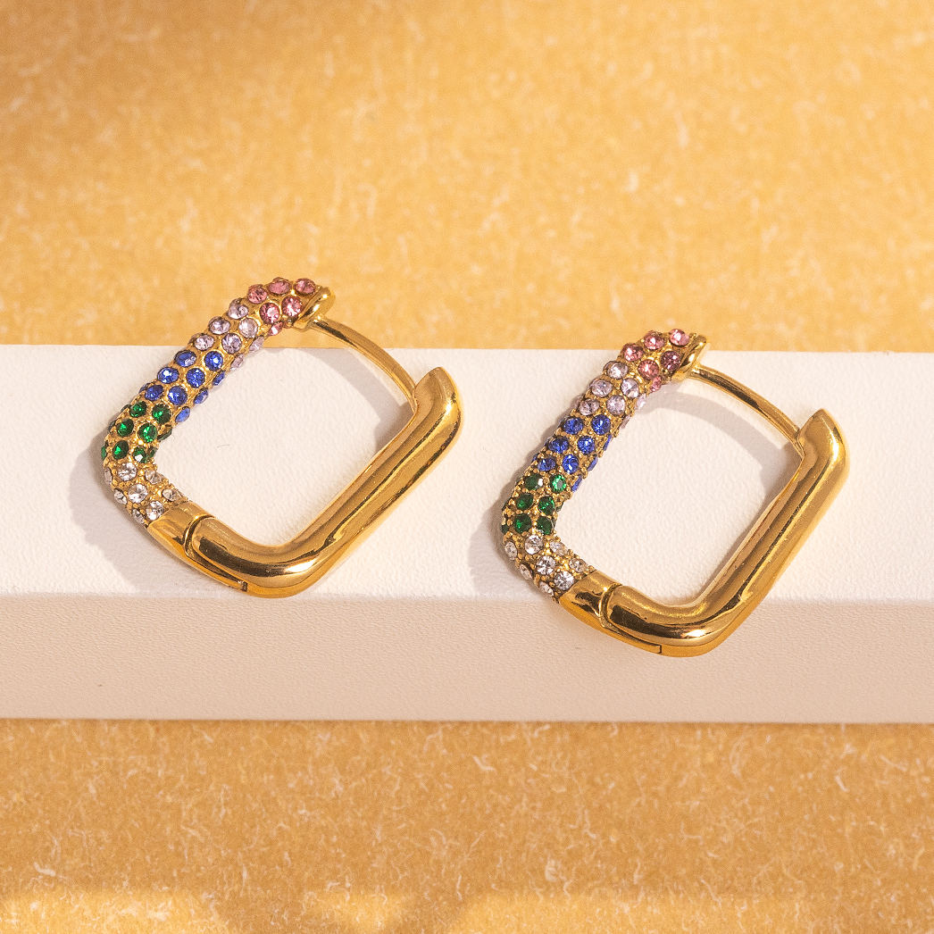 Multi Size Geometric 18K Gold Plated Rectangular Shape Earrings Non Tarnish Waterproof Jewelry Colorful Zircon Earring