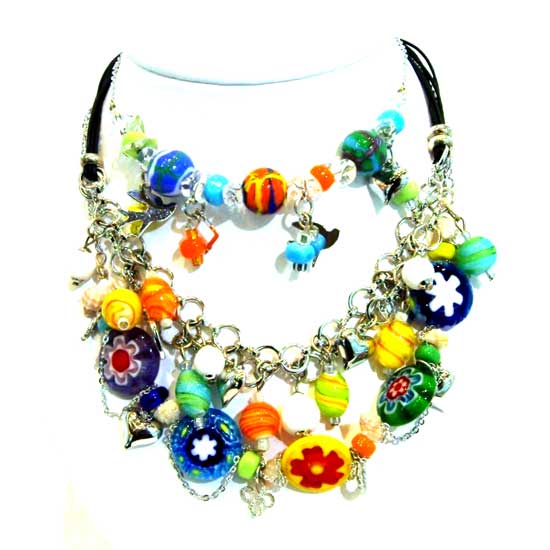 This necklace is delicately crafted with sophisticated details. The necklace features a multi-strand design decorated with beads in assorted colors, showcasing a touch of uniqueness. This necklace makes a pretty way to enhance your fashion wardrobe.