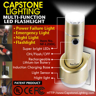 After initial charge Induction Flashlight can remain plugged in and used for any of its three functions.