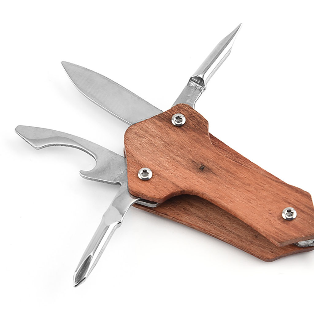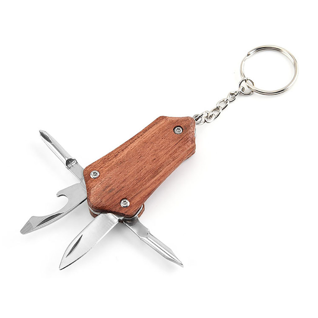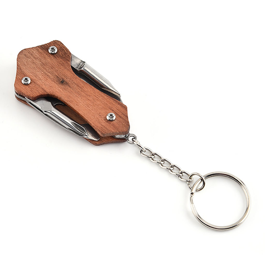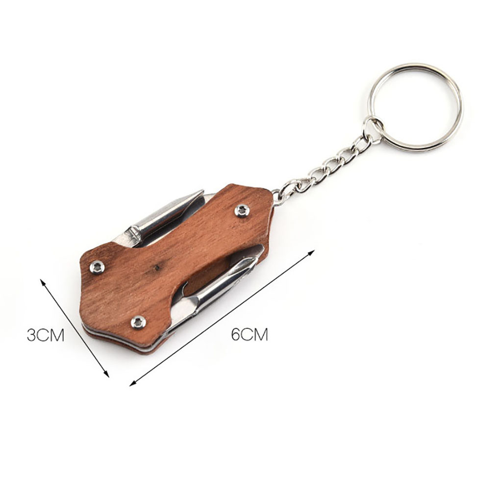 Multi-function Wooden Pocket Tool Keychain includes the following features :