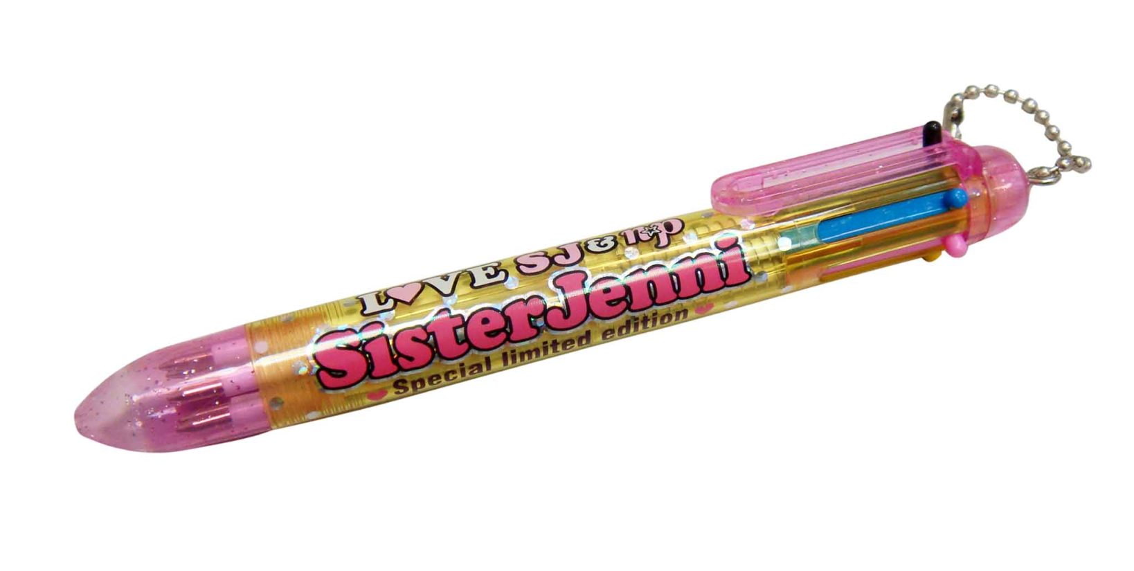 Coming in a wide variety of different colors, this ball pen can offer a fun and smooth writing experience. It has a wide barrel to offer a good grip and is adorned with colorful words on the barrel. The multi-color ball pen has a ball chain on top for attachment and is excellent for using as a promotional gift.