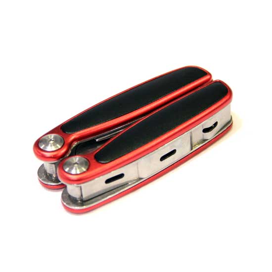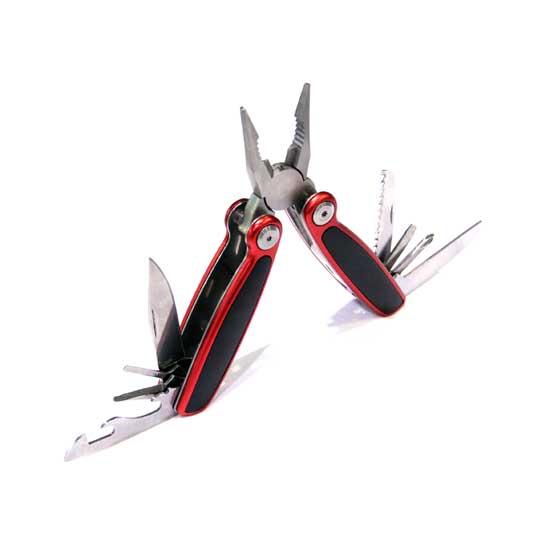 - Functions: needle-nose pliers, wire cutter, awl, blade, can opener, bottle opener, large and medium flat-head screwdriver, saw, Phillips screwdriver and file.