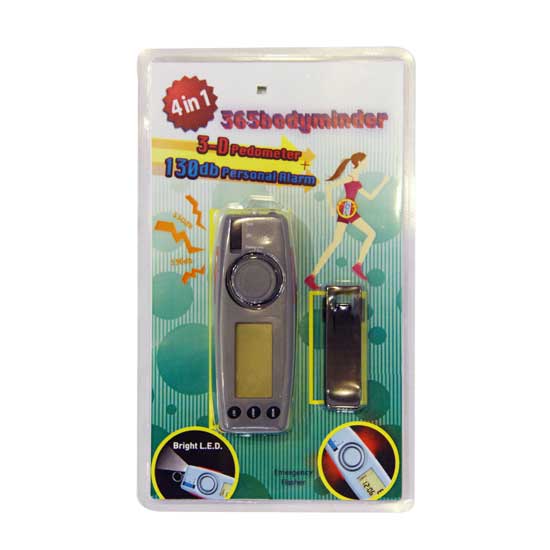 Displayed is a  multifunction pedometer that can also be used as an LED torch. Manufactured professionally, this pedometer can measure your steps accurately. This multifunction pedometer also has a built-in alarm for your convenience.