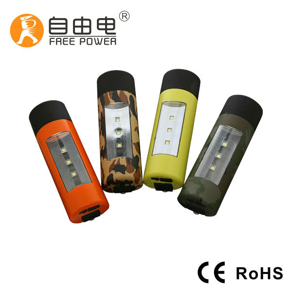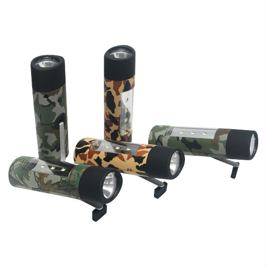 Keep this hand crank cylindrical torch in your tool box in case there is a sudden power outage. Engineered with a lithium battery, this multifunctional one can actually be a powerbank with a capacity of 4400mAh/3.7v. This lightweight and portable gadget features a camouflage pattern exterior for added appeal.