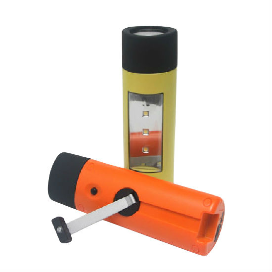 - Hand crank cylindrical torch and powerbank.