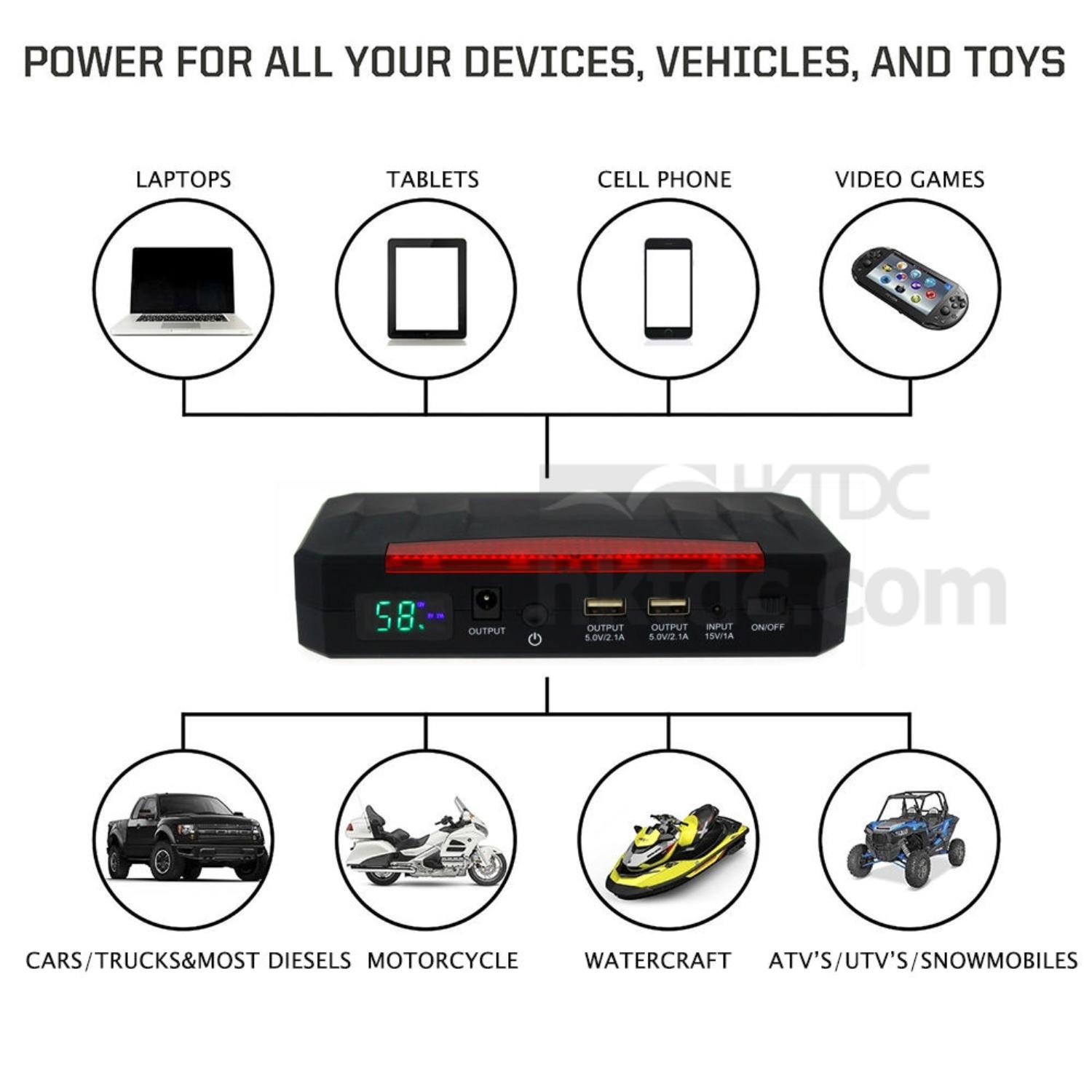 • Multi-function 12V Car Emergency jump starter/Car battery charger with emergency flash Light