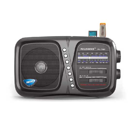 This is a multifunctional radio that supports music playback of USB devices, SD cards and MP3. It is designed with a retro appearance in solid black casing. The user-friendly panel with functional buttons ensures easy and intuitive operation.