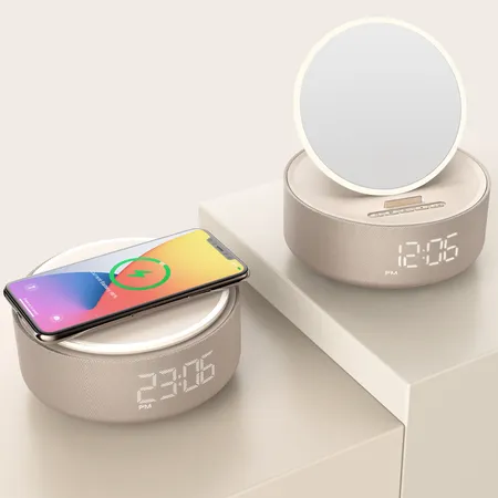 FEATURE:Night light;Alarm clock;15W Wireless fast charger;mirror;Bluetooth speaker;Charging distances<3mm.