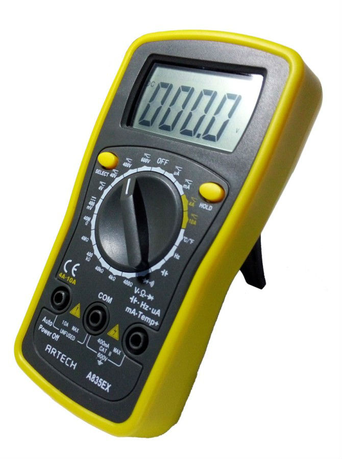 • V/A/Ohm/Hz/Cap/Temp./Diode/Buzzer