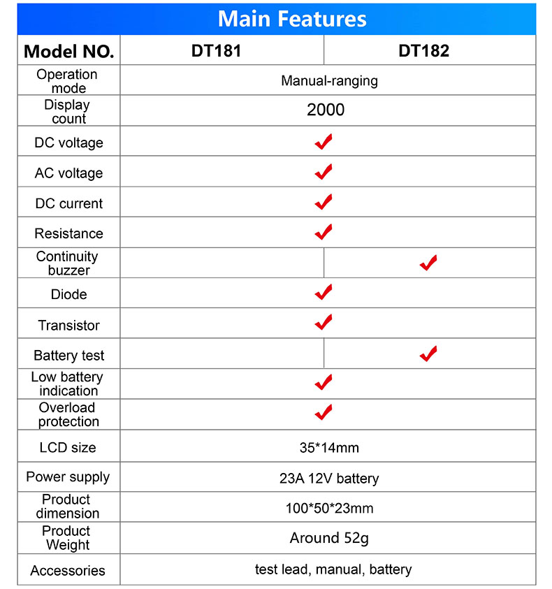 Multimeter Factory Direct Sale Mini-Size Pocket Size 3 1/2 Digits DT181