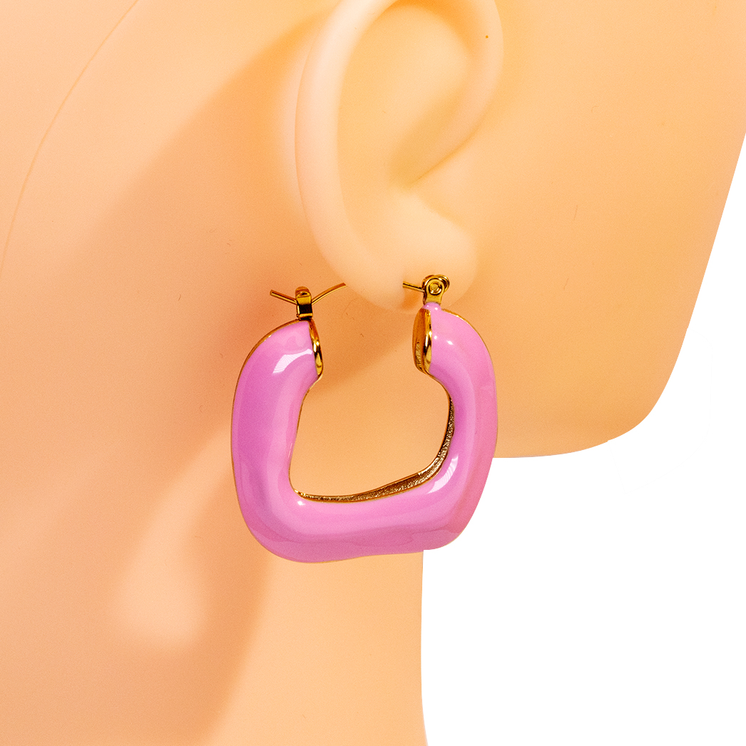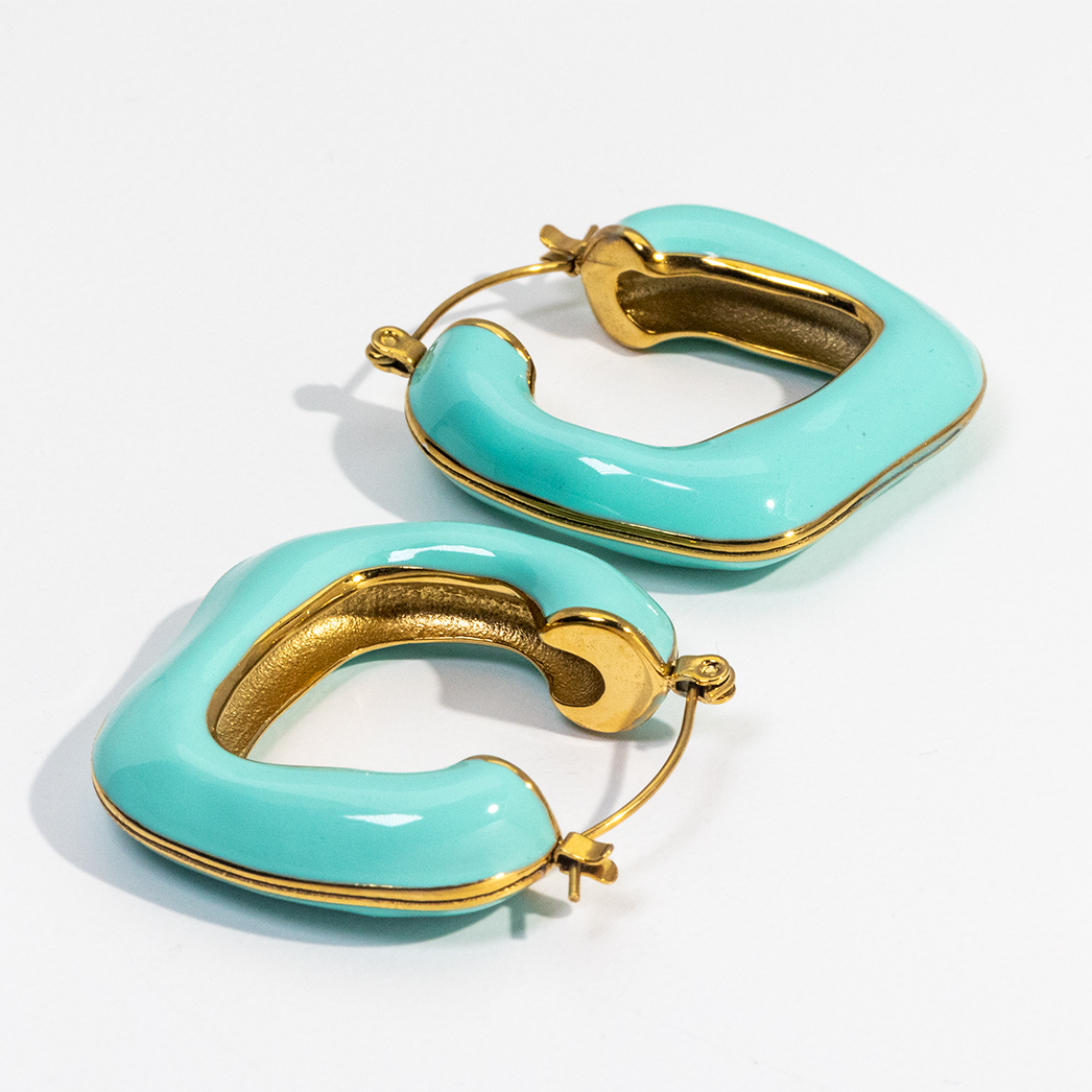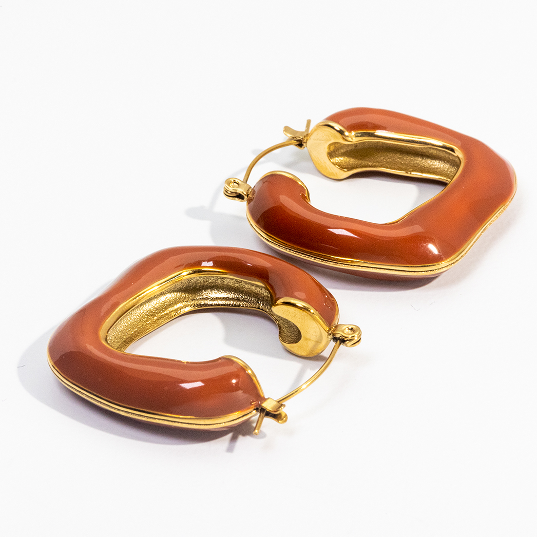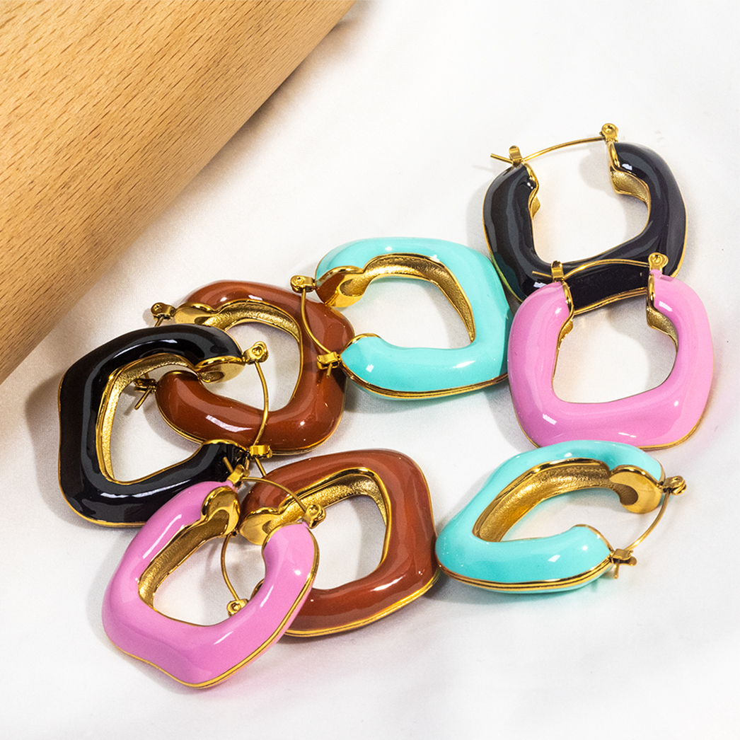 Vintage French Design Large Retro Drop Glaze Irregular Enamel Earrings Multiple Colors Non Tarnish Stainless Steel Hoop Earrings