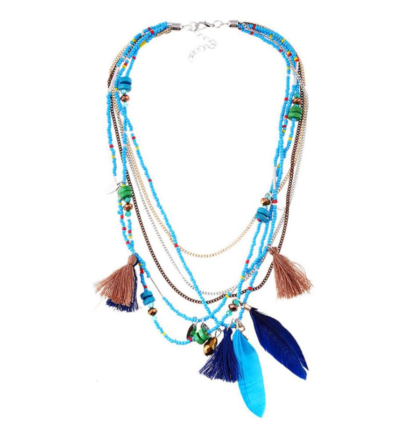 As shown in the picture, this is a fashionable necklace for lady, multiple layers of chains with beads and feather accessories.