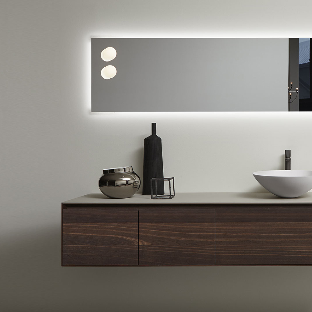 Single or double lighting allows you to create an atmospheric light at the top and perfectly illuminate the mirror.