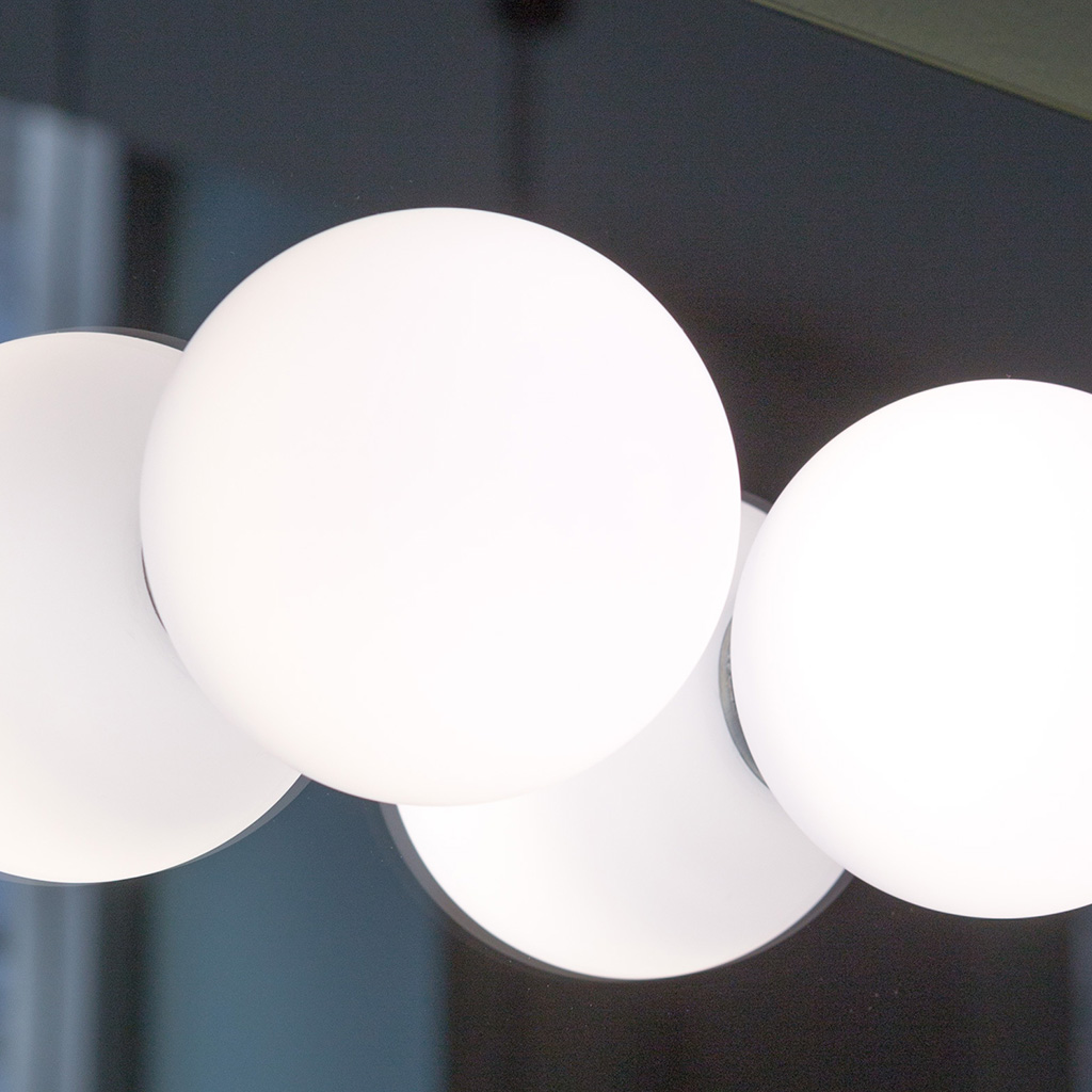 Clean pure style opal glass ball light,12V LED or 230V(110V) G9 LED version available. Round glass shades with a ultra-thin aluminium base.